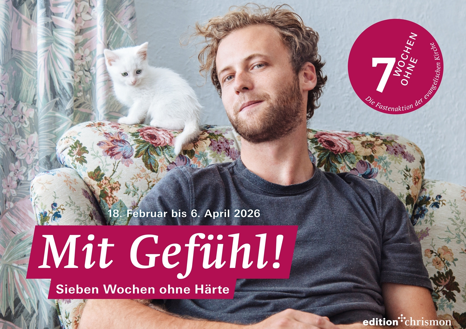 Unter dem Motto „Gefühl! Sieben Wochen ohne Härte“ wird angeregt, wahrzunehmen, wenn ein anderer Mensch gerade von Schwierigkeiten betroffen ist. "Das können wir tun: einander festhalten im Schmerz und auf den Weg Gottes schauen, der uns herausführen kann", empfiehlt Ralf Meister, Landesbischof in Hannover und Botschafter der Aktion „7 Wochen Ohne“. Er motiviert dazu: "Wir üben uns in einem mitfühlenden Umgang miteinander." Sieben Wochen lang kann jede und jeder ausprobieren, wie befreiend es sein kann, Härte hinter sich zu lassen und Gottes liebevollen Blick auf die Welt zu teilen. So kann die Passionszeit zu einer Zeit werden, die  verändert.
